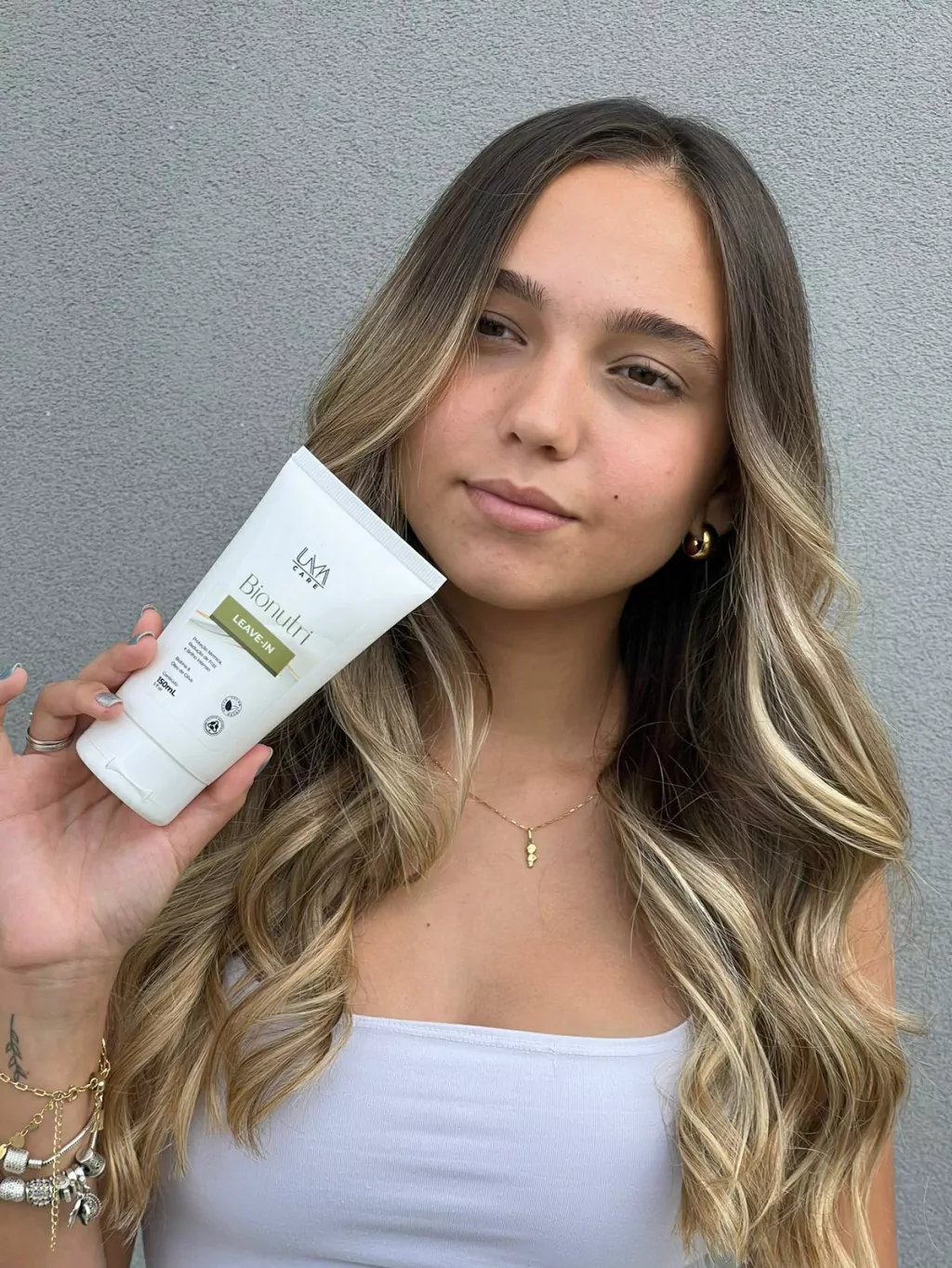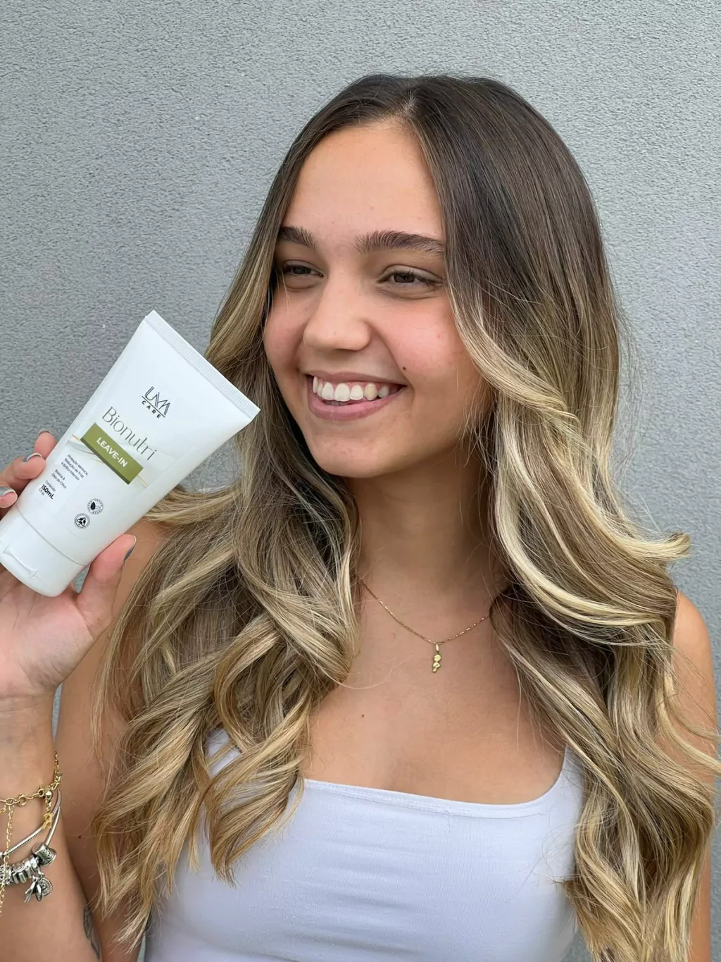 O Leave-in Bionutri da UMA Care foi desenvolvido para selar o tratamento, proteger contra o calor do secador e da chapinha e manter os fios nutridos, alinhados e com brilho intenso ao longo do dia.